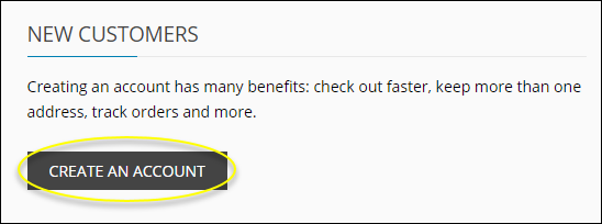 - Click the "Create an Account" button under the "New Customers" section: