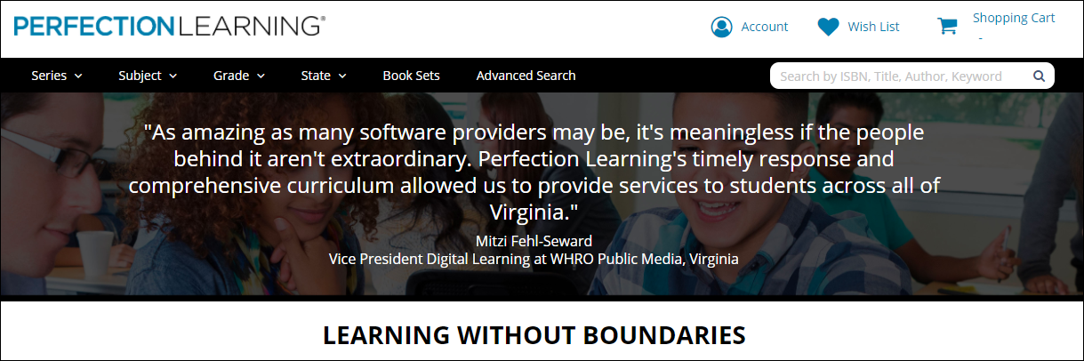 - Go to www.perfectionlearning.com in your preferred internet browser. The screen should look like this: