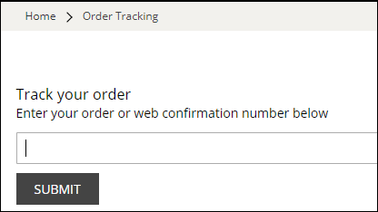 - Enter your order number or web confirmation number in the text-box and click the "Submit" button: