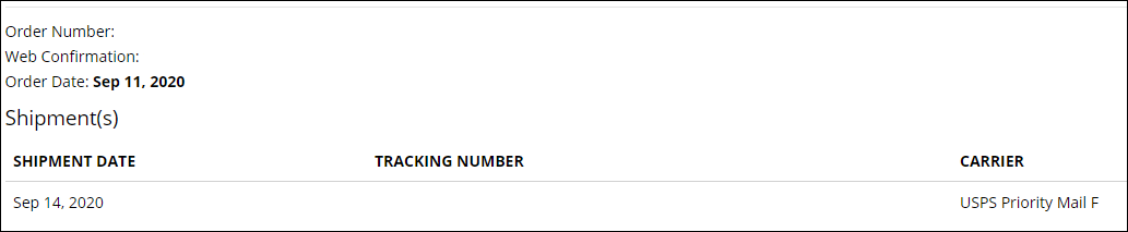 - This will show your order number, order date, and the shipment information: